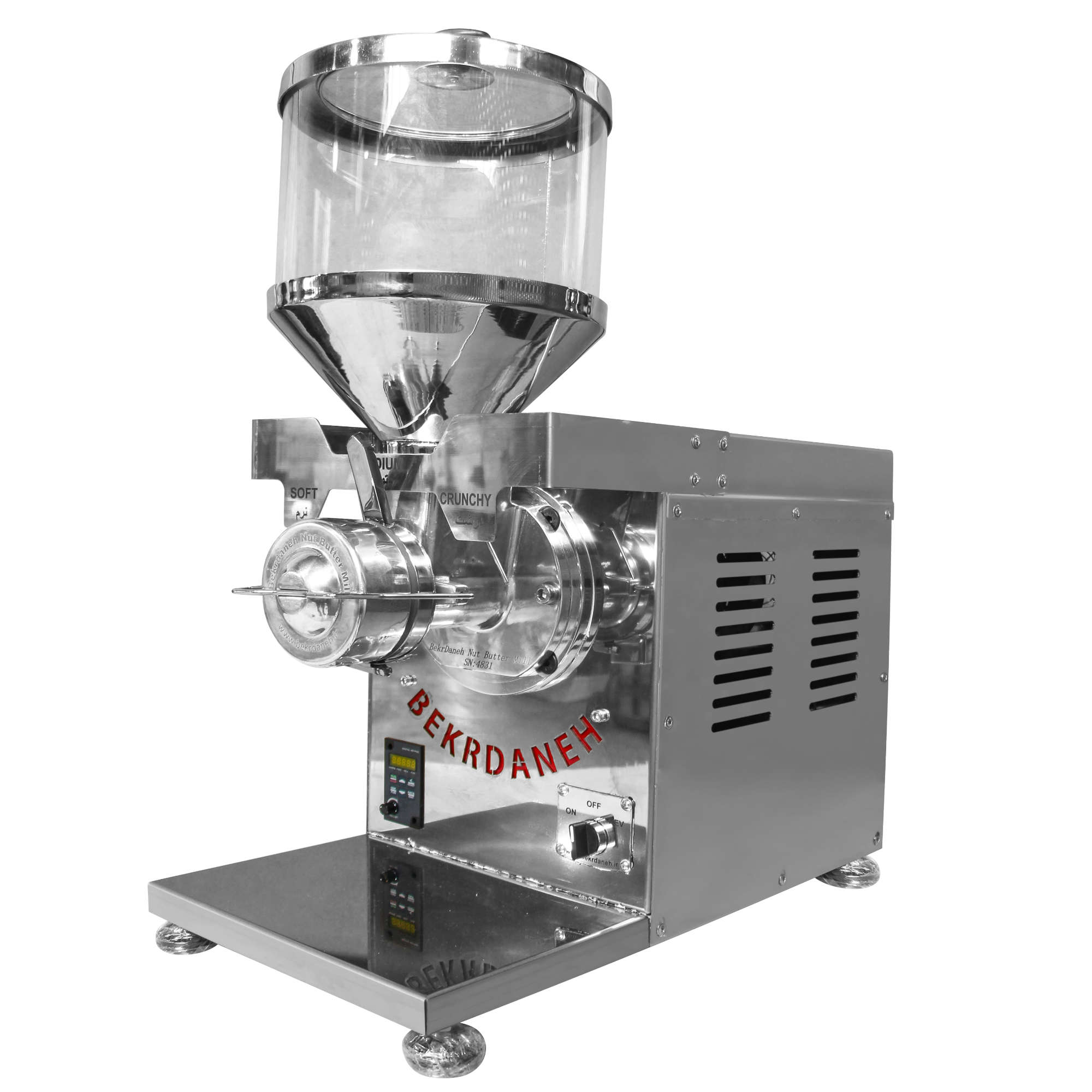 دستگاه کرہ ساز هایپرمارکت ( توربو ) بکردانـه این دستگاه با ظرفیت کره گیری 100 کیلوگرم در ساعت ، قابلیت کره گیـری از بـادام زمینی ، پسته ، فنـدق ، بـادام شـيرين ، گردو ، نارگیل و کنجـد را دارد . از ویژگی منحصـر بـه فـرد ایـن دستگاه ، مجهـز بـودن بـه اهـرم تنظیـم نرمی و زبری کره حتی در حین کارکرد دستگاه است . کاربـر مـی توانـد بـه راحتـی و تنهـا بـا چرخانـدن اهـرم ، میـزان نرمـی و زبـری کـره خروجـی از دستگاه را تنظیـم کـنـد . کلیـه قطعات سیلندر ، قابـل شستشـو بـوده و ماردون و تیغه هـای آسیاب از استیل سخت شـده ، طراحی و ساخته شده اند که کارکرد دراز مـدت دسـتگاه را بـدون کوچک تریـن اسـتهلاک تضمین می کند . دسـتگاه مجهـز بـه ایـنـورتـر ، جهت تنظیـم دورمـوتـور با کاهـش ۷۰ درصـدى مصـرف انـرژی می باشد . این دستگاه به دلیل دارا بودن مـوتور ۳ اسب بخار قدرتمند ، توربو نامگذاری شده است که در هنگام کره گیری از دانه ها و مغزیجات سخت تر همچـون بادام زمینی ایرانی و نارگیل ، نسبت به مدل های موتور ۲ اسب ، کارکرد راحت تری دارد . طراحـی زیبـا و چـشـم نـواز و سهولت در کاربـری دستگاه از ویژگی های این دستگاه می باشد . این دستگاه در دو مـدل بـا کاور تمـام اسـتیل نقره ای و طلایی به سفارش مشتری قابل ارائه است .