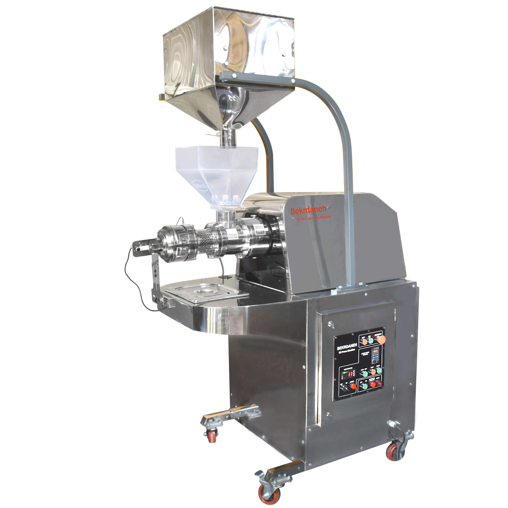 This machine with capacity of 8 kg of seed per hour , is capable for extracting oil from small and medium-size oil seeds such as: sesame, black seed, flaxseed, soybeans, sun- flower seeds and... . The machine can run continousely for days and nights and due to very low noise operation it is suitable for using in Oilseed extracting shops and workshops. This machine is equipped with Intelligent turn-off device controlled By PLC, so when finishing the seed or having any problem in oil extraction ,the machine will be turned off automatically.